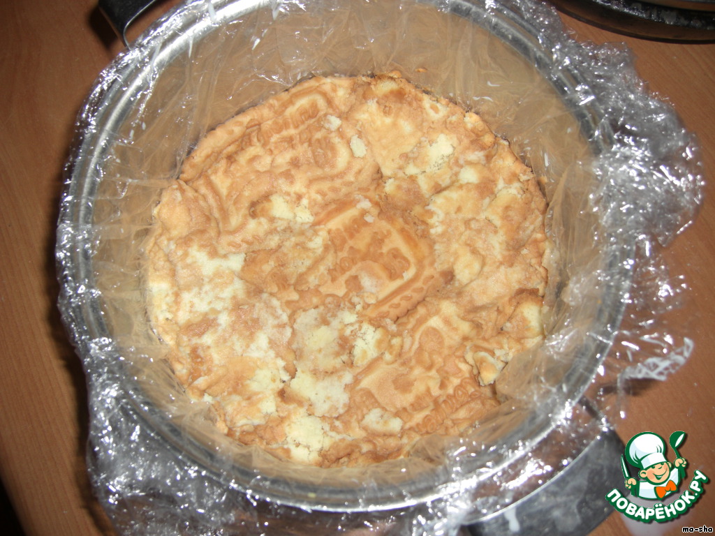 Получившуюся массу выливаем поверх печенья.