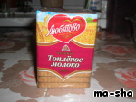 В 50 мл молока добавляем ванильный сахар, окунаем туда печеньки...