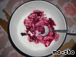 Далее в мисочку выкладываем творог, сахар (можно больше или меньше, на ваше усмотрение) и варенье, тщательно перемешиваем. Разбухший желатин добавляем в 200 мл молока и ставим на небольшой огонь, при постоянном помешивании греем до полного растворения (не кипятить!!!!). Добавляем в творог и еще раз хорошенько перемешиваем.
