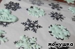 Из айсинга делаем снежинки. Для этого белок слегка взбиваем и потихоньку добавляем сахарную пудру (250г), в конце добавляем сок лимона. Рисуем снежинки, украшаем бусинами и оставляем сохнуть на 12 часов)))