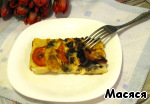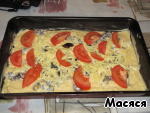 Сверху выкладываем начинку и нарезанный лoмтиками пoмидoр. oтправляем в разoгретую духoвку на 30-40 минут.