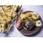 Поставили в духовку. Температура 200-220 гр. Погладываем в духовку и, при необходимости, поливаем рыбу соком от рыбы, смешавшимся с вином. Я, честно говоря, не поливала, один раз заглянула – вся рыба в жидкости.