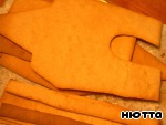 Вот наш домик и готов, но это же Кошкин домик! Поэтому делаем прянички-котята... после смазывания джемом прянички целиком смазываем глазурью с помощью шпателя...