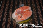 У меня был большой стейк, я разрезала его на две части и положила в маринад.