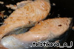 Достать семгу из маринада и обжарить с каждой стороны до румяной корочки(2-3 мин).