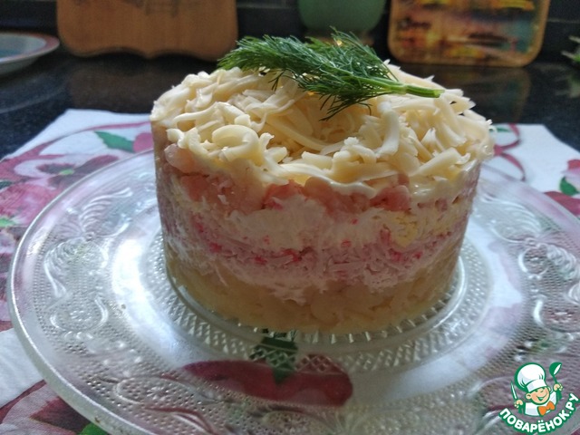 Рецепт «Салат с креветками и крабовыми палочками»: