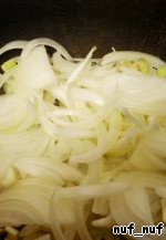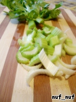 В другой сковороде, на таком же количестве масла, обжарим лук и сельдерей. До прозрачности лука.