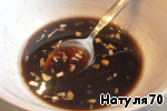 Приготовим маринад для индейки. Для этого смешаем соевый соус, оливковое масло, вино, измельченный чеснок, перец и паприку.