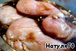 Заливаем маринадом филе, предварительно нарезанное на куски. У меня было 4 куска по 250г каждый. Маринуем 2-2,5 часа.