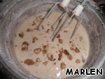 Готовим обычный бисквит с добавлением небольшого количества орехов. Все ингредиенты смешать.