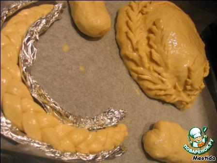 Все покрываем слегка взбитым желтком.