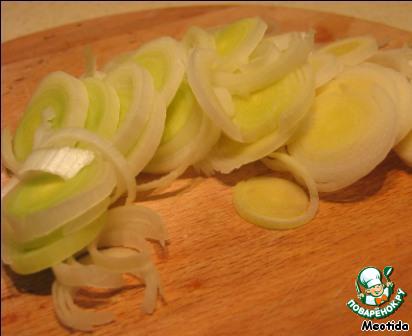 • Белую часть порея нарезаем кружочками.