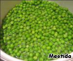 • Горошек помещаем в кастрюлю, заливаем водой, после закипания готовим еще 3 минуты.