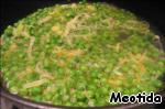 • Высыпаем горошек, наливаем 1 стакан бульона и оставляем тушиться минут 10-15