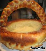 половину теста раскатываем в круг, берем круглую миску, смазываем ее маслом и оборачиваем тестом.