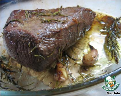 • Складываем мясо с приправами в форму для запекания. Готовим в разогретой до 190С духовке около часа, периодически поливая выделившимся соком.