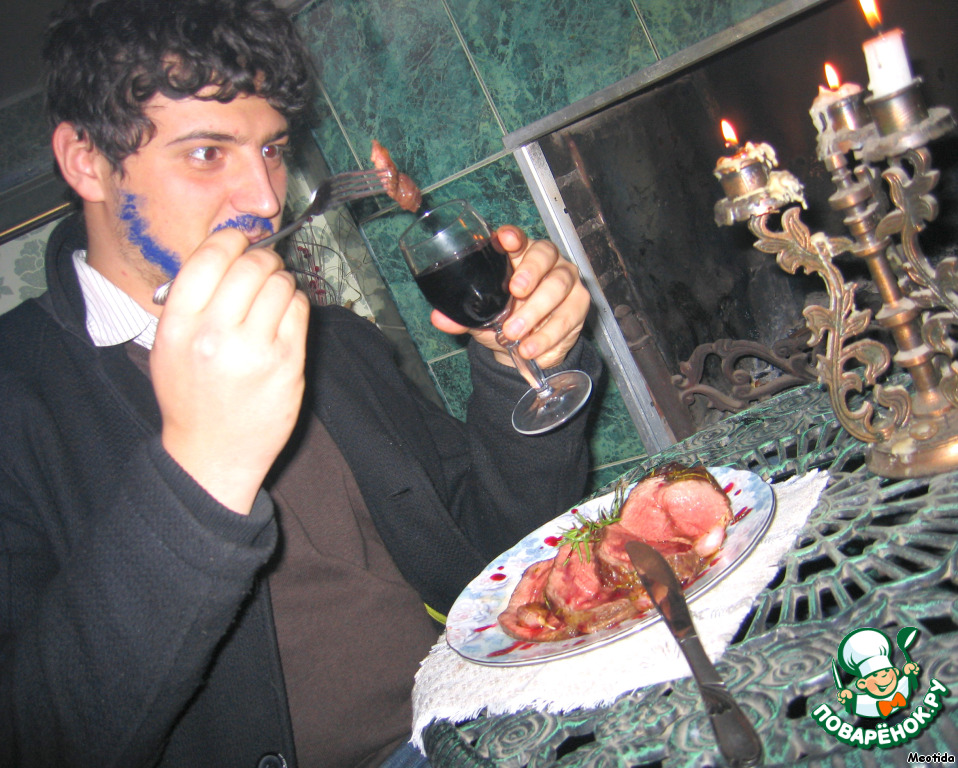 • Мясо.. вишневый соус и красное вино, непременно утолят любой голод, даже злодейский.. и сказка будет со счастливым концом.