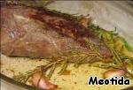 Складываем мясо с приправами в форму для запекания. Готовим в разогретой до 190С духовке около часа, периодически поливая выделившимся соком.