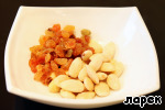 • Утром миндаль запарить дважды кипятком на несколько минут и очистить от шкурки. Изюм достаточно просто обдать кипятком.