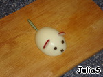 Очищенные яйца разрезать на две половинки - это и будут мышки.