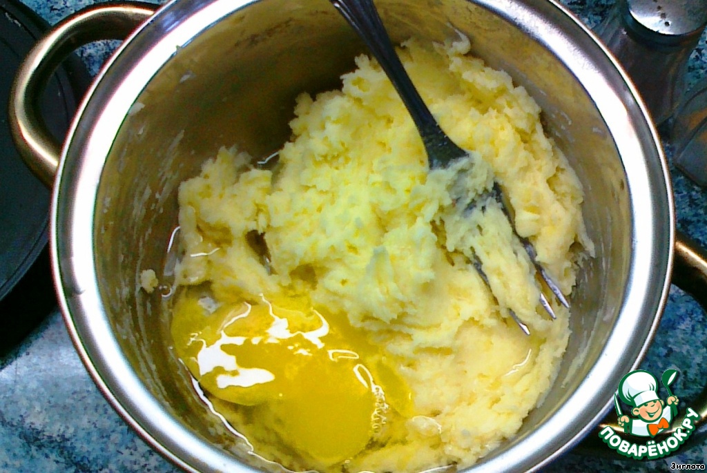 Очищенный картофель отварить до готовности и размять в пюре со столовой ложкой сливочного масла.