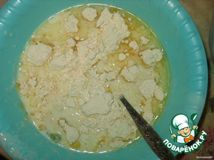 Все ингредиенты для теста положить в глубокую миску и тщательно перемешать, чтобы не было комков. Я это делала миксером на низких оборотах.