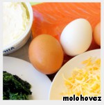Яйца взбить в пену. Добавить к ним сыр и шпинат, размешать. Слегка посолить и поперчить.