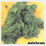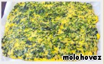 Шпинат разморозить и, при желании, измельчить. Я оставила целыми листочками.