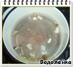 Смешать воду, уксус, порезанный чеснок, перец, лавровый лист, гвоздику и соль.(но соль я бросала не всю сразу. Вначале бросила 0.5 ст.л, а после пробы добавила еще немного). Доводим до кипения.