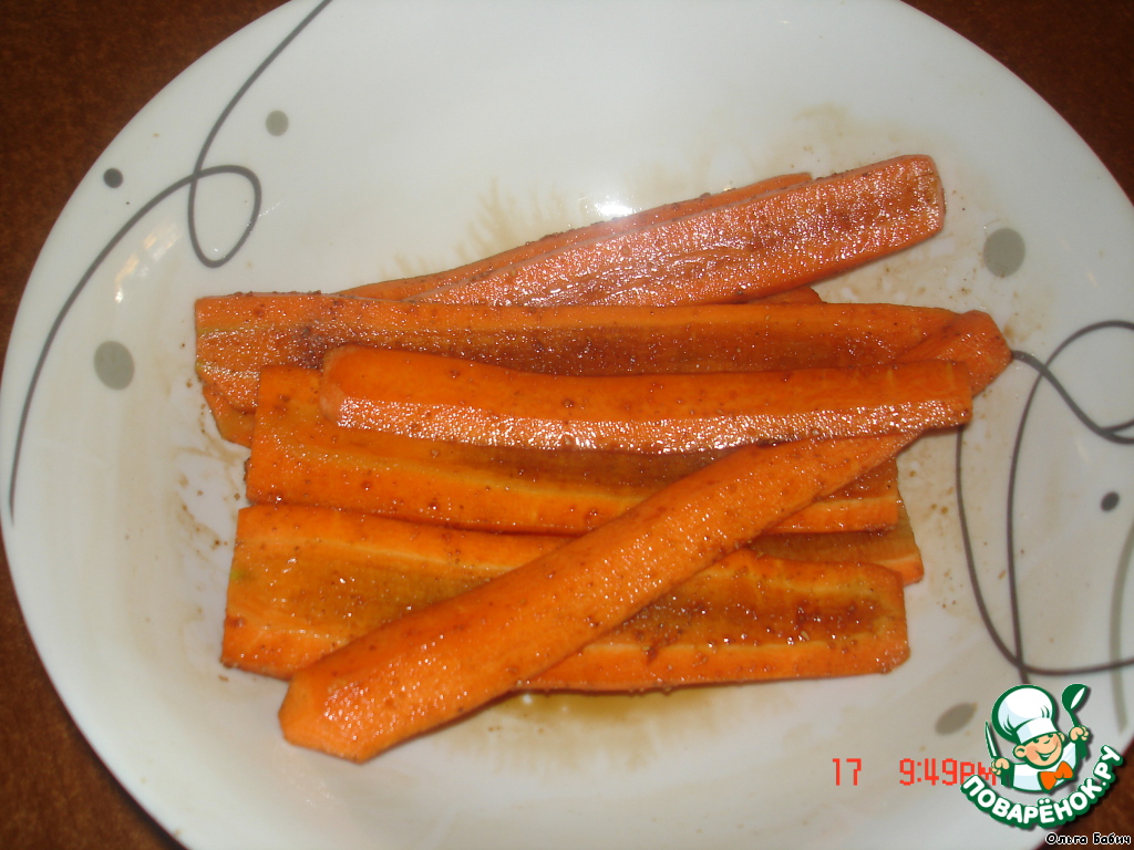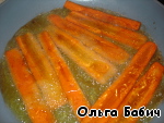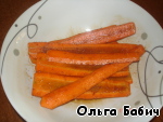 Морковь нарезать ножом вдоль, толщиной 2 мм.