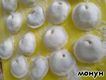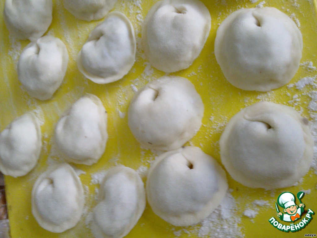 Приготовить тесто. Поставить его в холодильник на 30 минут. После, слепить пельмени. |