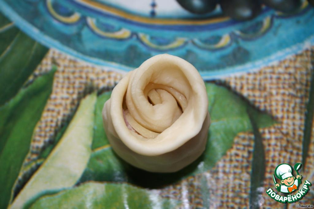 Я готовила тесто в хлебопечке. Можно сделать его вручную - смешать ингредиенты, замесить тесто и дать подойти в течение часа. После этого обмять и приступить к изготовлению булочек. |