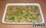 Можно посыпать зеленью. И убрать в холодильник до полного застывания.