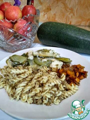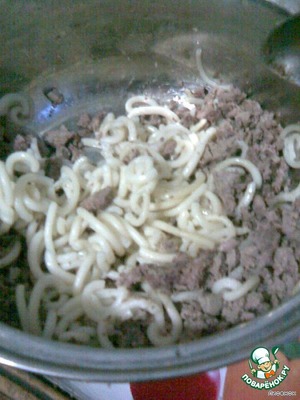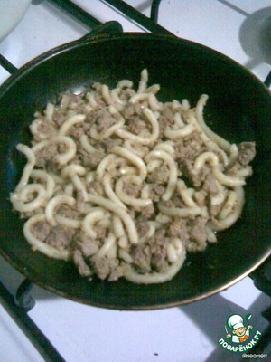 Альтернатива "Макаронам по-флотски". Что-то осталось, чего-то мало (для полноценного блюда), всё смешали и получилось новое блюдо!