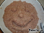 Добавить фарш (тут я еще раз прохожусь блендером, чтобы был помельче, но это не обязательно). Посолить, поперчить, добавить любимые специи (у меня сушеные петрушка и зеленый лук), хорошо вымесить фарш руками.