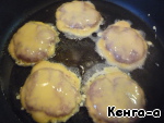 Сделать несколько плоских лепешек, обмакнуть в кляр и обжарить до золотистого цвета с двух сторон.