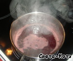 Нагреваем, но не доводим до кипения. Убираем с плиты. Добавляем сахар, по щепотке кориандр, мускатный орех, 2-3 шт гвоздики. Затем еще раз нагреваем (не до кипения!!!) и аккуратно венчиком вмешиваем крахмал. Помешиваем, переливаем.
