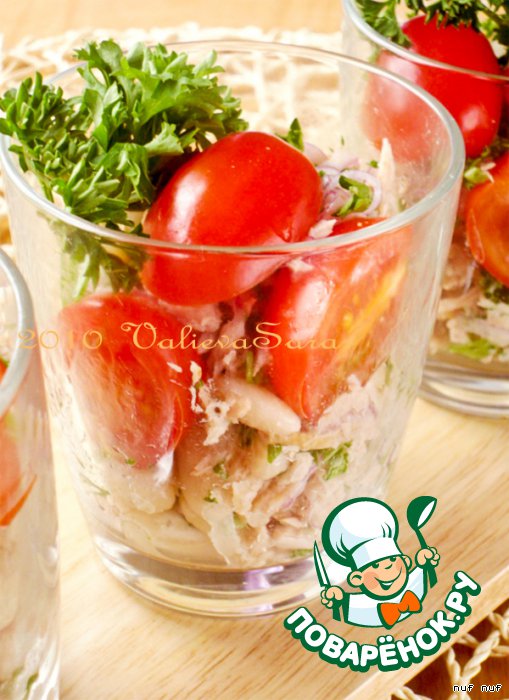 Рецепт "Салат с тунцом, фасолью и помидорами":