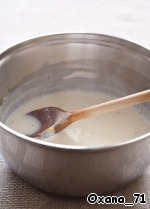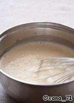... добавить муку и влить струйкой молоко, помешивая венчиком, чтобы масса была гладкой.