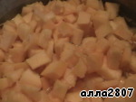 Сложить в кастрюлю и залить водой. Накрыть крышкой и поставить на огонь, когда вода закипит, сделать маленький огонь и варить до готовности тыквы. Пока она совсем не разварится.