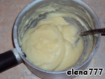 Приготовим ванильный заварной крем: 2 желтка взбить с пакетиком ванилина и 1/2 стакана сахара, всыпать 1ст. л. муки и 2ст. л. крахмала, взбить. Молоко нагреть почти до кипения и вливать его в желтковую массу по ложке, непрерывно взбивая смесь миксером.