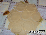 Достать охлаждённое тесто, отделить от него 1/4 часть (положить её в морозилку), другую часть раскатать на столе. Вырезать стаканом или блюдцем круги по размеру формочек.