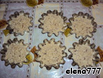 Достать холодное тесто, натереть его на крупной тёрке и посыпать сверху на шоколад в каждую формочку.