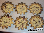 Бока формочек хорошо промазать, а дно выстелить промасленной бумагой, выложить в них круги теста, прижать по бокам. Сверху положить по 1-2 ст. л. ванильного крема и по несколько штучек замороженной клубники (слегка вдавить их в крем).