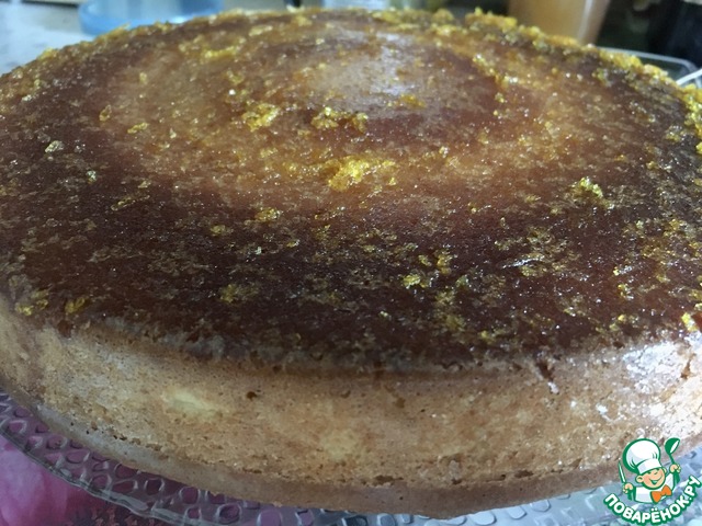 Когда сироп будет готов, еще горячим вылить его на пирог. Дать пропитаться.