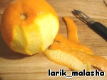 Начнем с приготовления сиропа: апельсин моем и тоненько срезаем цедру.