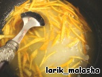 Выжать сок из апельсина, добавить 100 г сахара и цедру. Варить в кастрюле около 30 минут до загустения сиропа. -