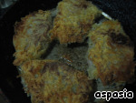 А теперь быстро разделываем котлетки, обваливаем их в сыром тертом картофеле, затем в муке и обжариваем на сильном огне в растительном масле.
