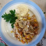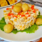 Рецепт этого блюда был размещен на сайте в 2009 году мной под названием "Салат Шампуруза" и иллюстрирован в рамках акции "Раскраски". Этот салат я попробовала лет 5 назад, мне он понравился, очень сытный и вкусный. Прост в приготовлении.