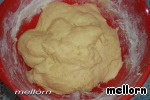 К сырной массе добавить яйца, сахар, соль, разрыхлитель и муку. Замесить тесто.